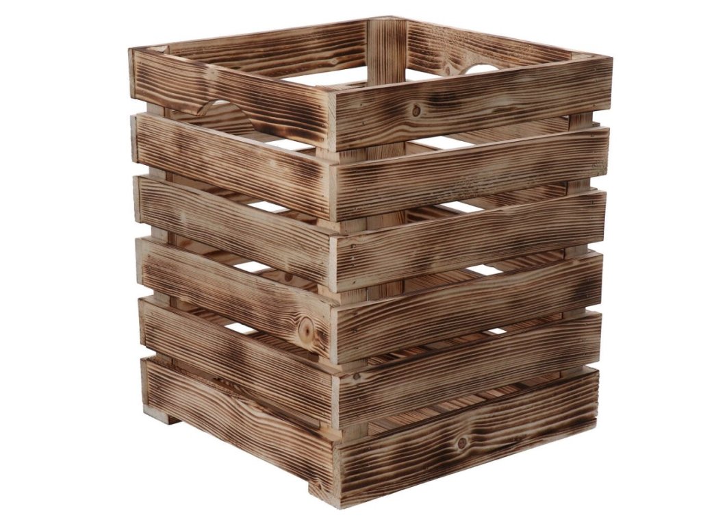 Opálená dřevěná bedýnka 30 x 30 x 35 cm