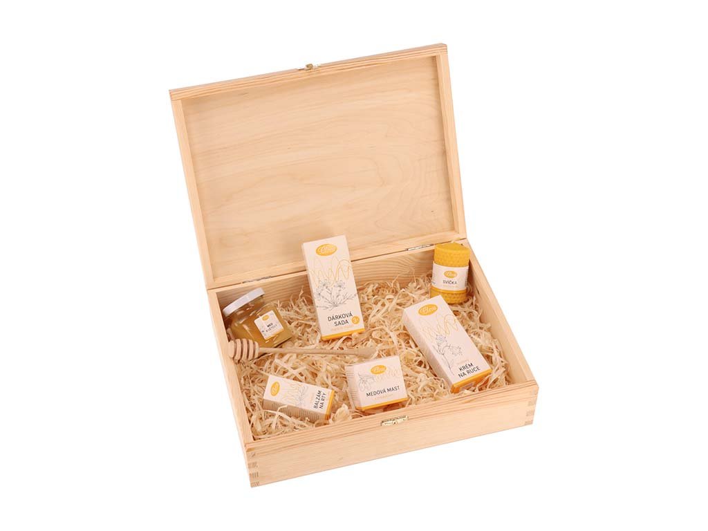 Sada medových výrobků v dřevěné krabičce je dárek, který je nejen praktický, ale i krásně zabalený, což dodává na výjimečnosti. Zejména pokud u nás krabičku doplníte o gravírovaný text nebo obrázek. Vytvoříme tak pro vás krásný dárek pro manželku nebo originálně zabalený vánoční dárek pro babičku.
