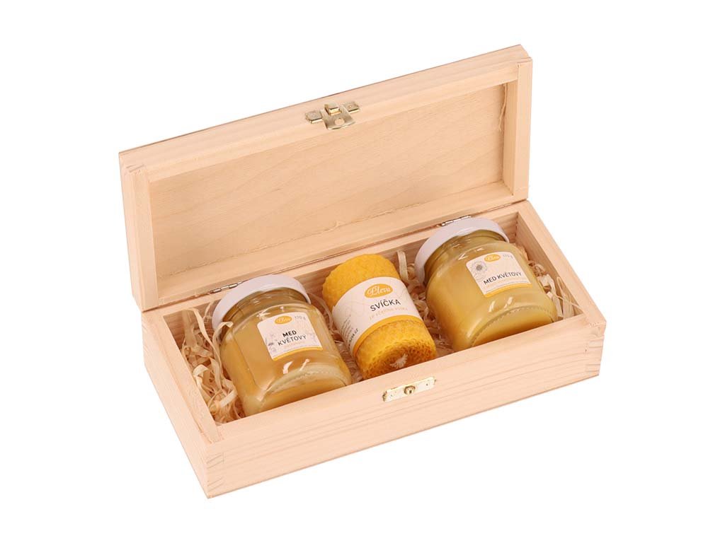 Sada medových výrobků v dřevěné krabičce je dárek, který je nejen praktický, ale i krásně zabalený, což dodává na výjimečnosti. Zejména pokud u nás krabičku doplníte o gravírovaný text nebo obrázek. Vytvoříme tak pro vás krásný dárek pro maminku k narozeninám nebo originálně zabalený vánoční dárek pro dědu.