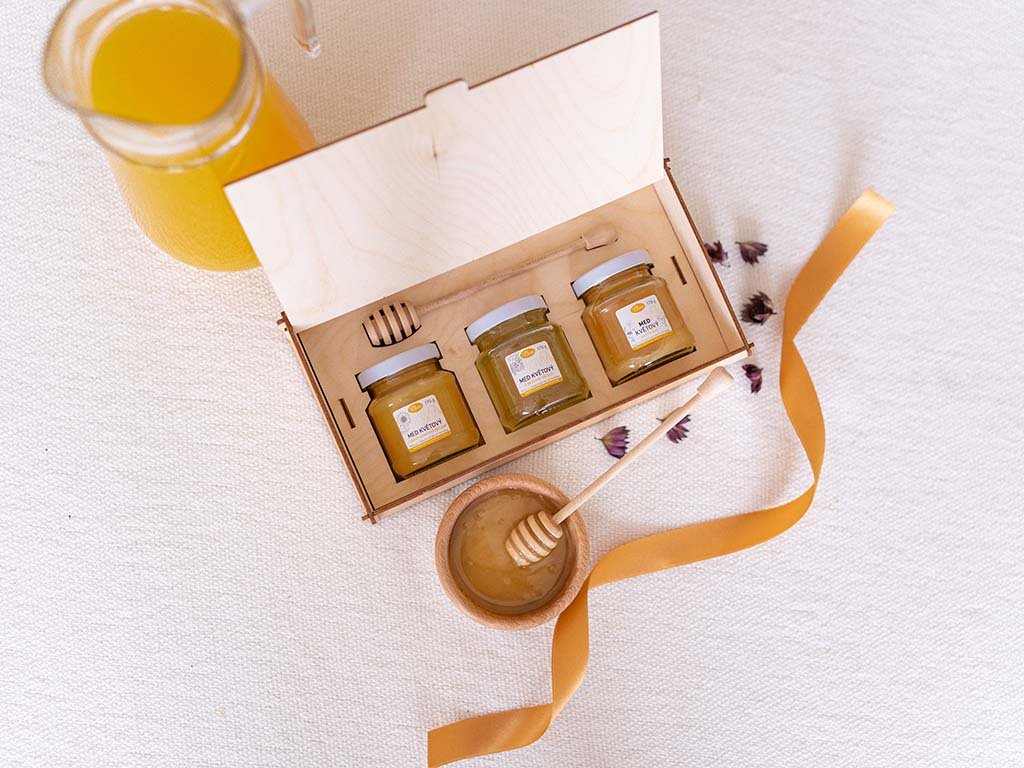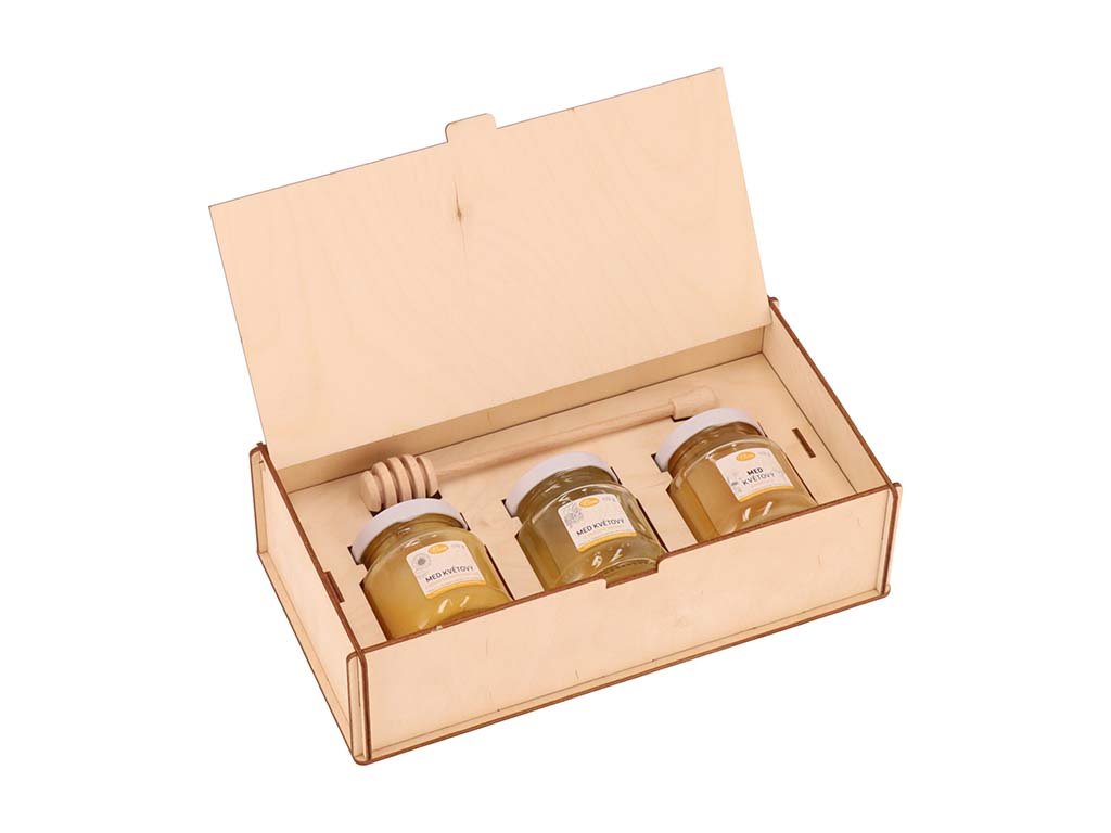 Výběr tří kvalitních českých medů v dárkové krabičce s dřevěnou medonoskou je ideální dárek, který vždy potěší.