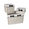 Designový trojdílný set košíků z loupaného proutí vystlaný bílou látkou s ozdobnými mašlemi, který ukryje...