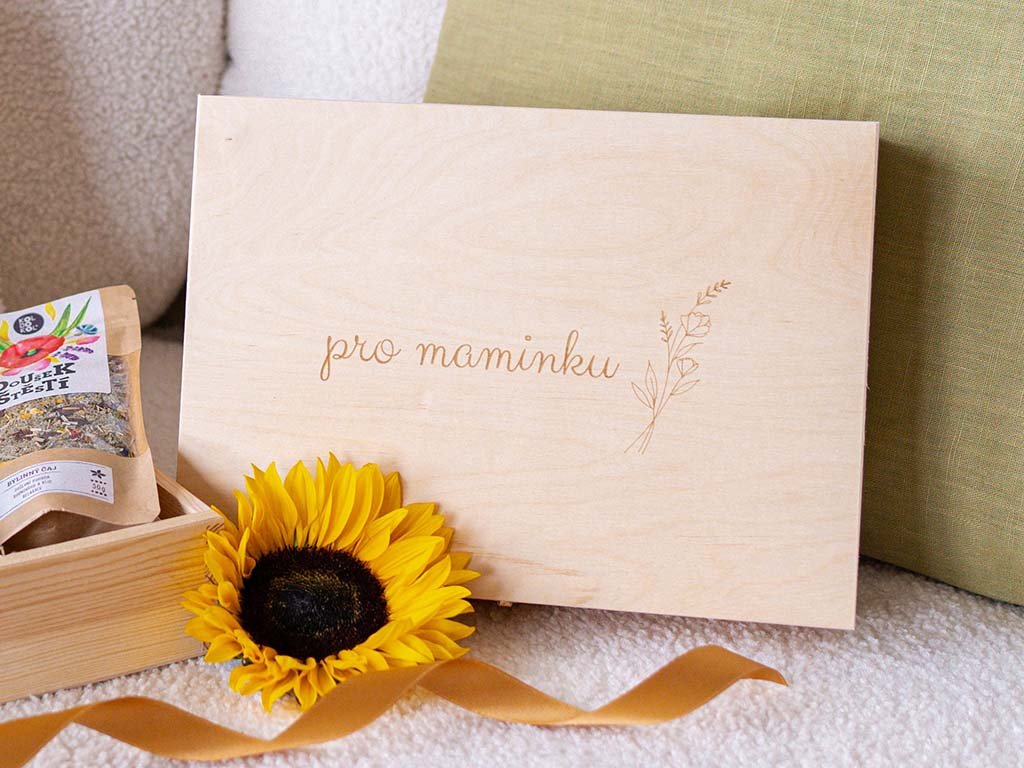 Maminky si zaslouží chvíli klidu jen pro sebe. Gravírovaná dřevěná krabička s voňavými sypanými čaji a sladkým medem jí dopřeje šálek pohody, kdykoliv si bude chtít odpočinout. Je to milý způsob, jak říct: „Mami, děkuji.“