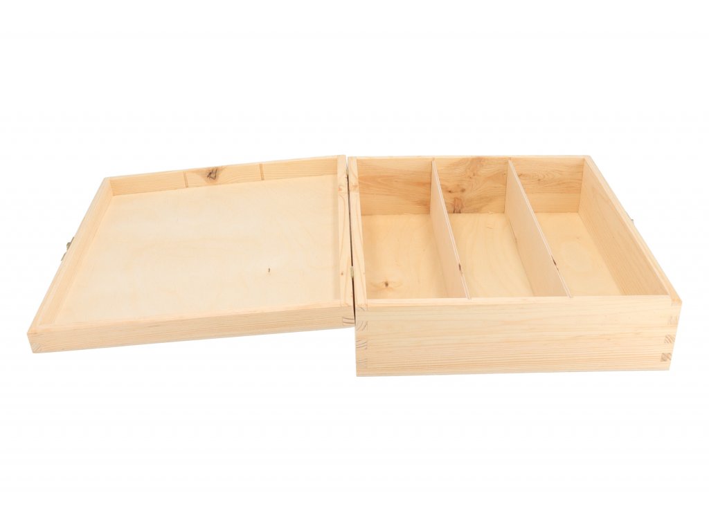 Krabička je rozdělená na tři přihrádky, stěny lze však jednoduše z krabičky vyjmout.